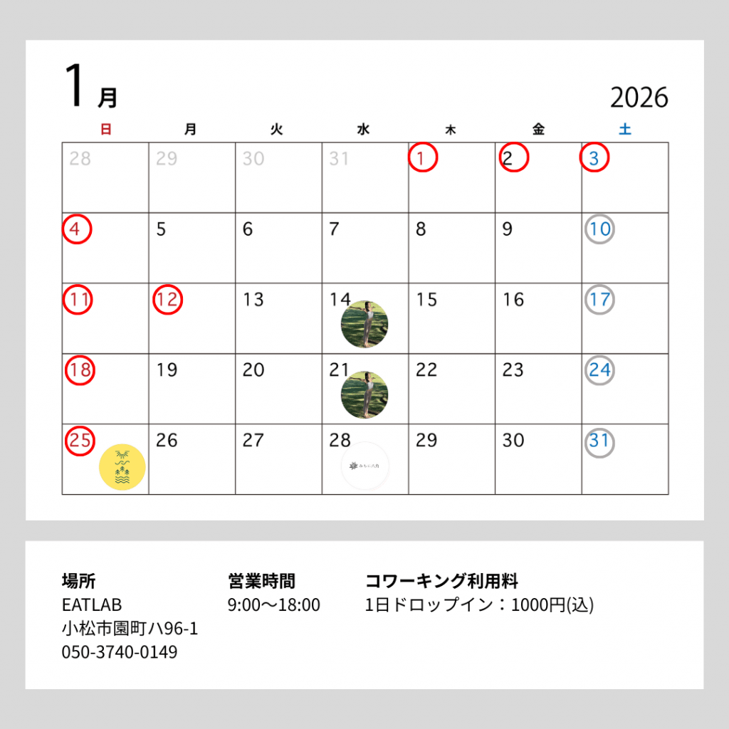 1月営業日のお知らせ
