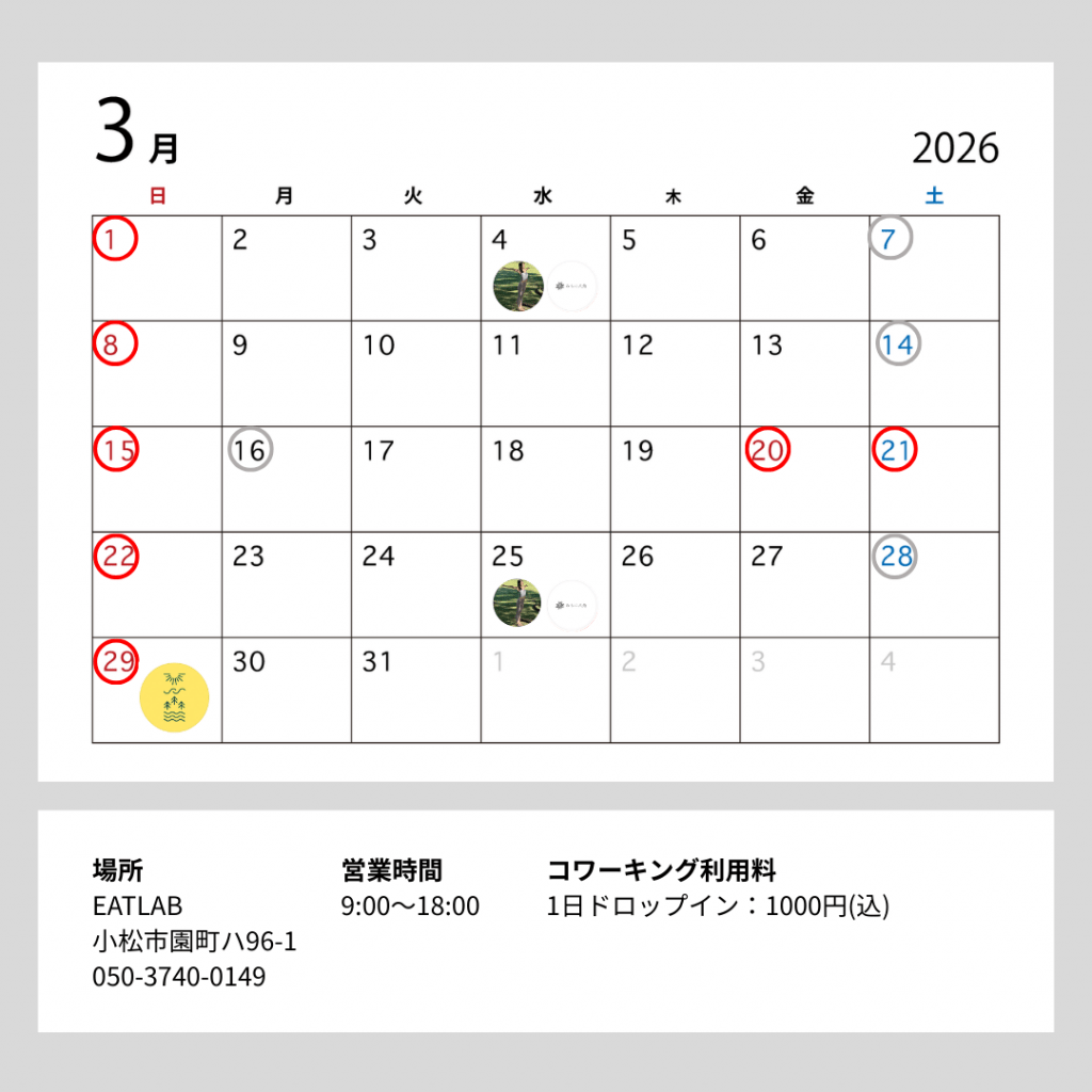3月営業日のお知らせ